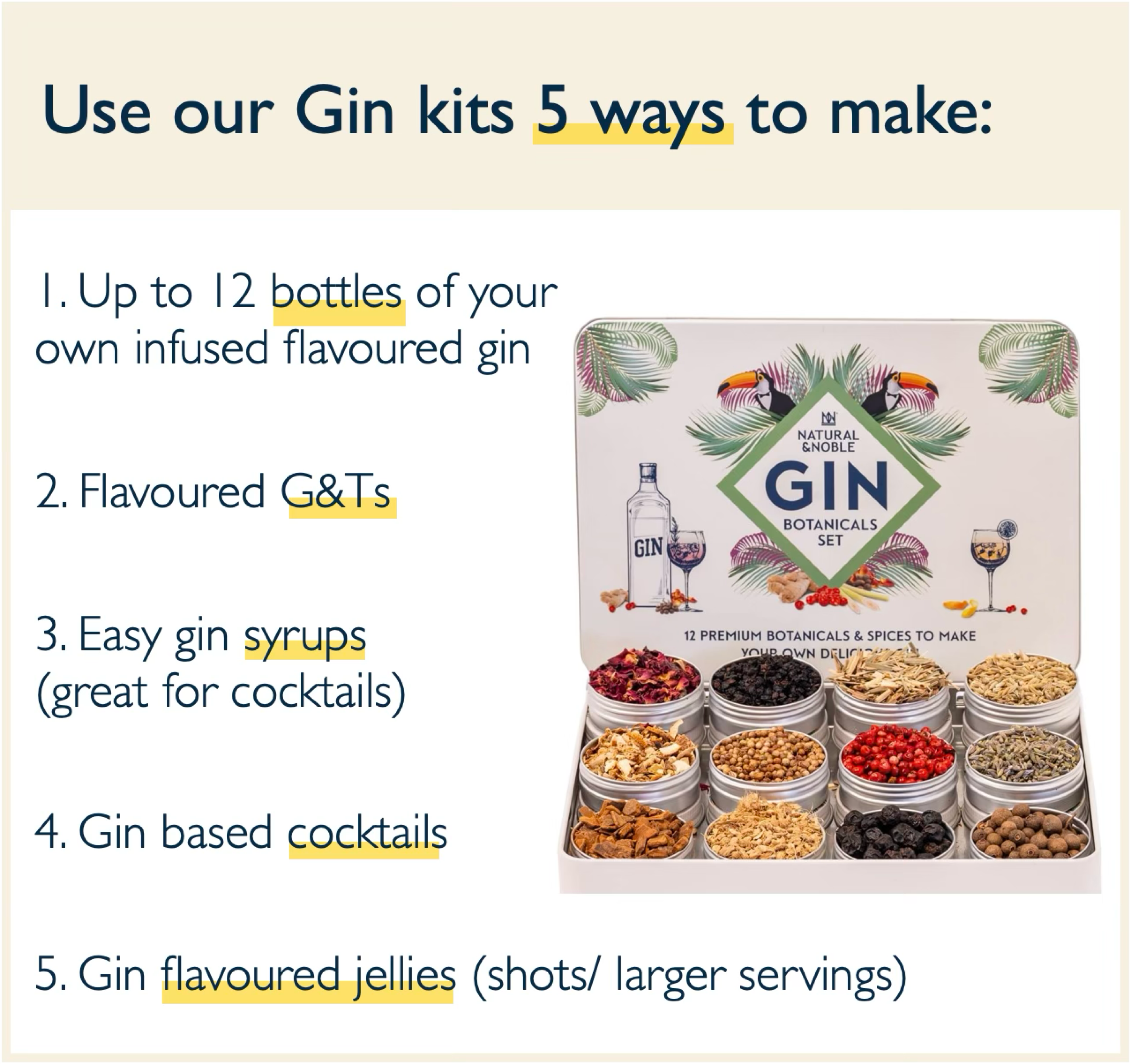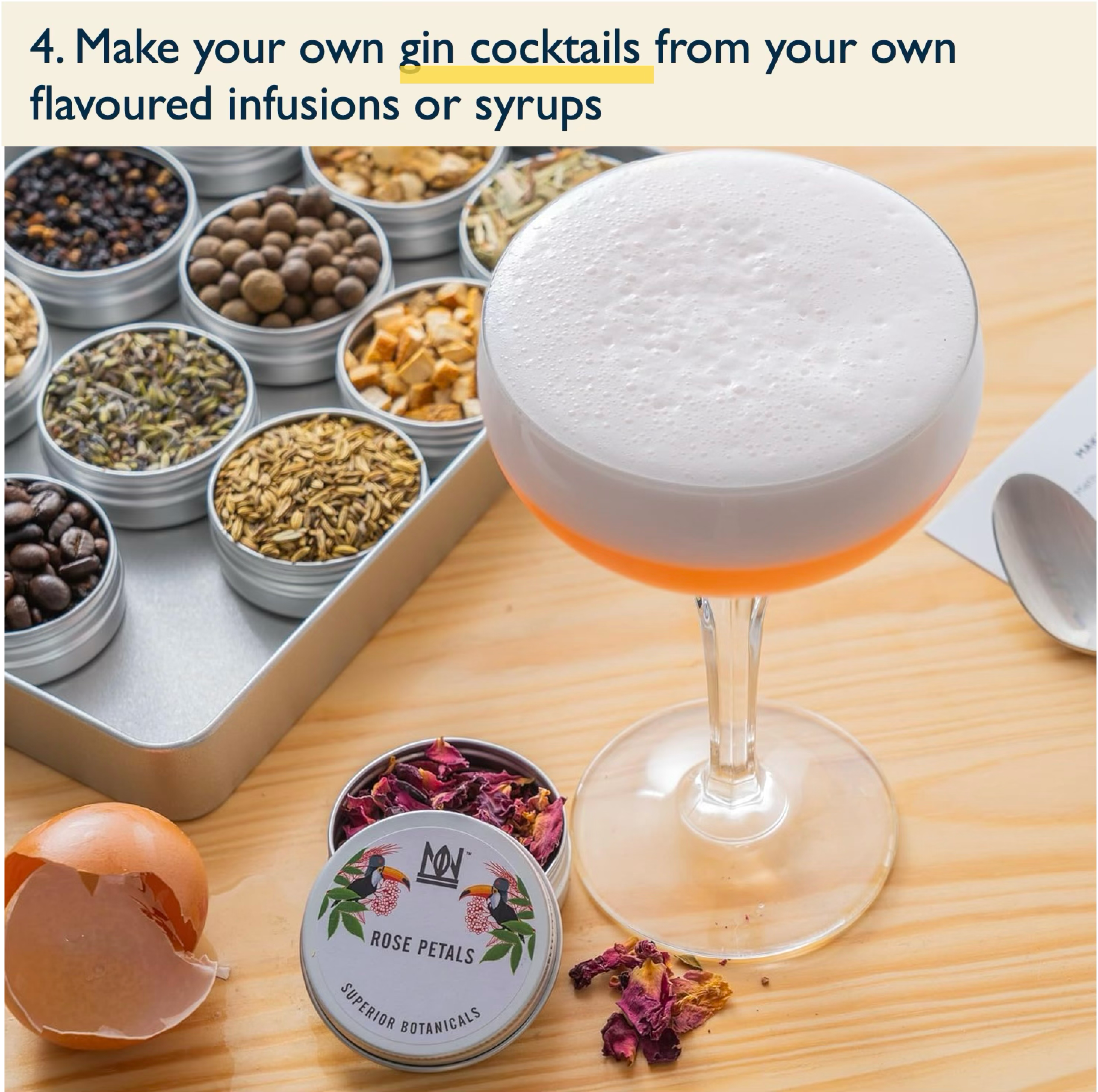 - Make flavoured G&Ts, syrups, gin cocktails, liqueurs and yes, flavoured gin jellies, too!